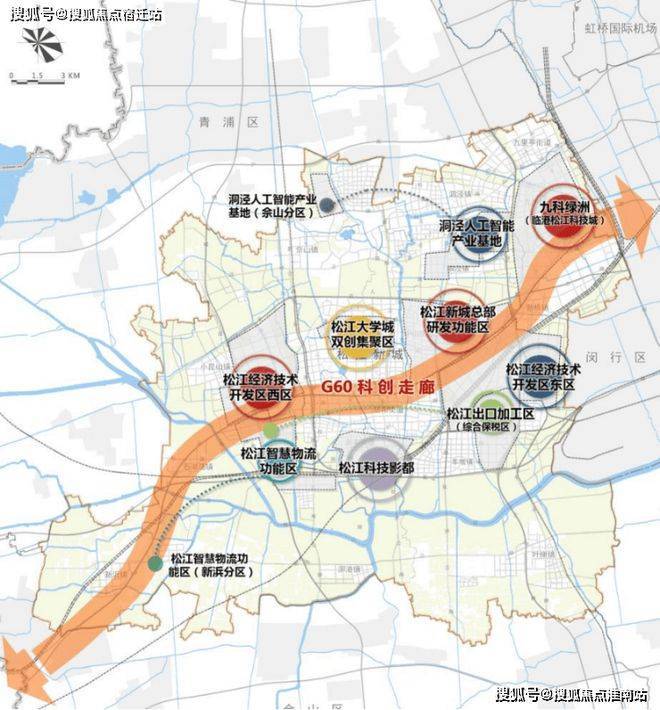 在G60高速两侧形“一廊九区”的布局,集聚40多家世界500强,聚集了松江约90%的工业产值,占上海工业产值近10%(数据来源:上海松江)