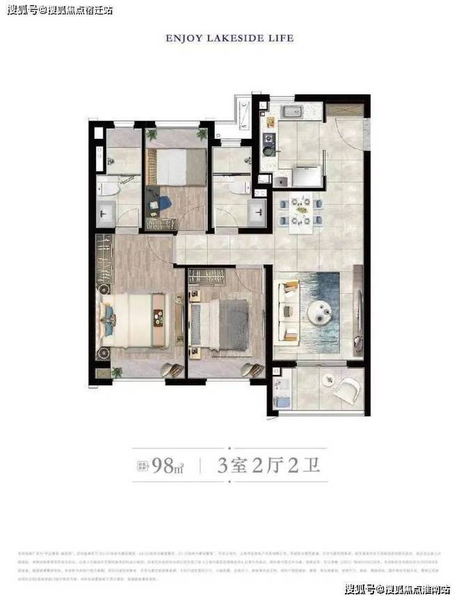 就拿项目的主力户型,建面约89-98㎡高层来说。