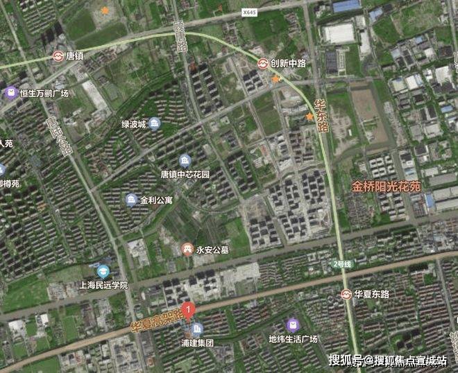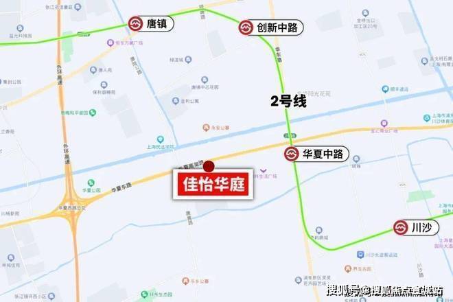 佳怡华庭项目位于川沙和唐镇交界处,和唐镇仅相隔一条华夏东路,距离2号线华夏东路站约1.3km。