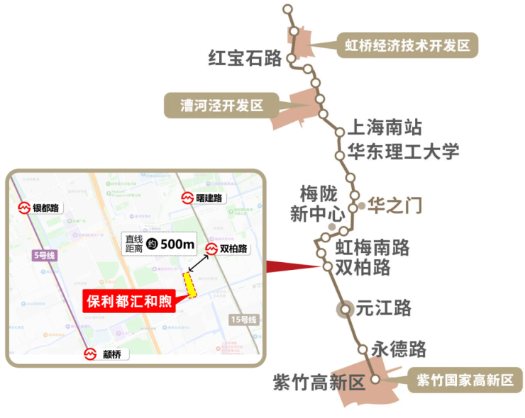 项目距离15号线双柏路站直线距离约500米,纯正的地铁盘。