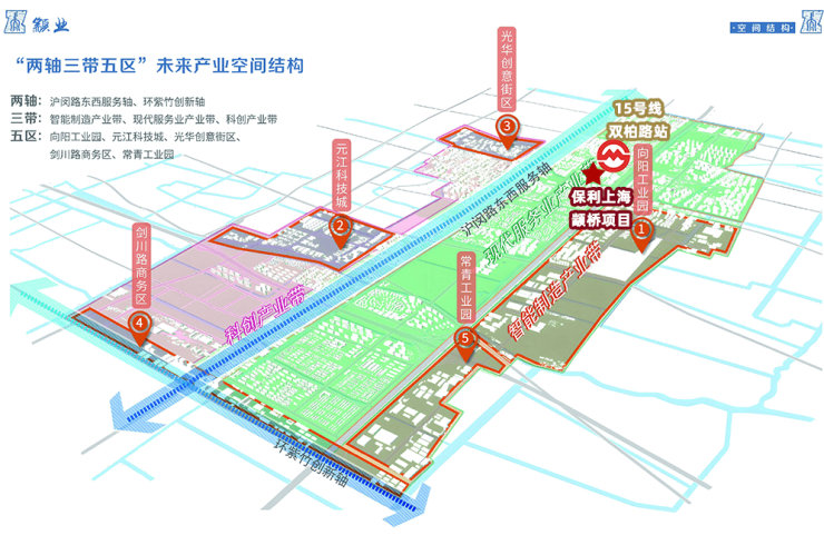 更关键的是,颛桥手握主城范围内弥足珍贵的产业用地资源,形成“两轴三翼”的规划布局。