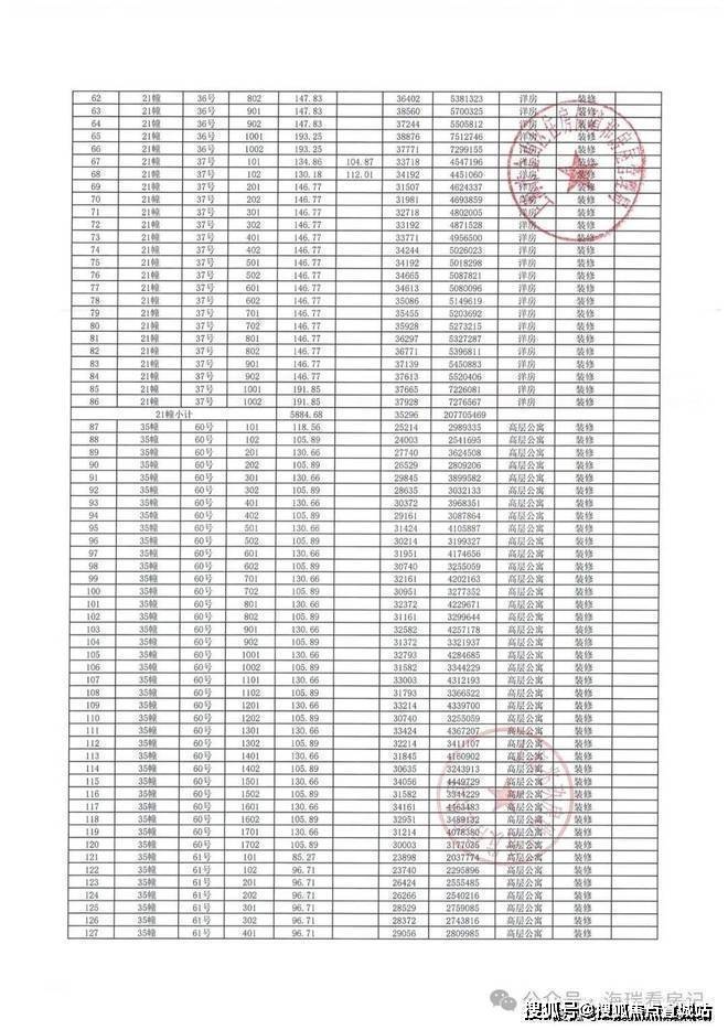 一房一价表如下: