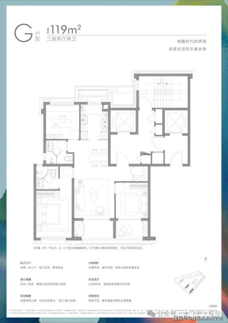 项目首推建面约117-139㎡3-4房,你想要的“类独立电梯厅”、“双阳台高实得率”、“大面宽”、“270°灵动飘窗”等应有尽有。