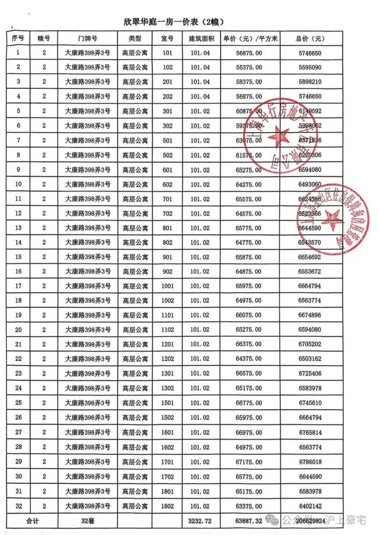 大华公园柏翠项目一房一价表▼