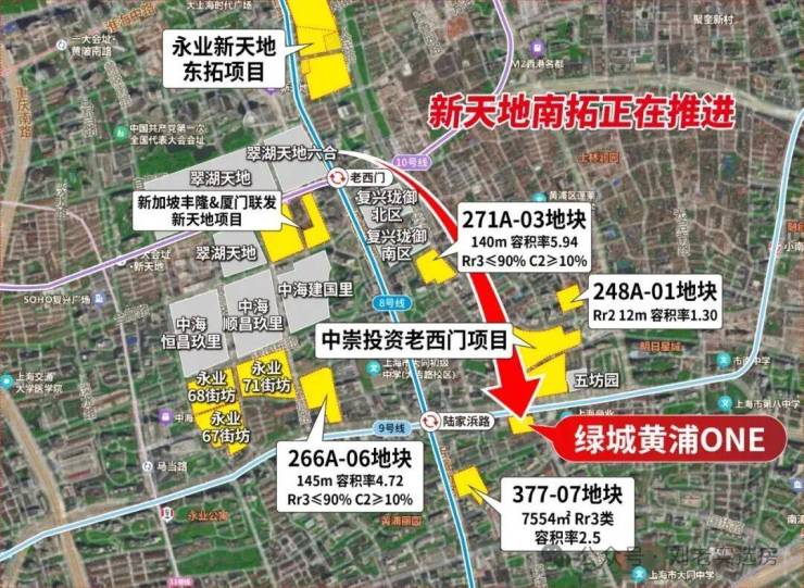 目前南扩区域已初具雏形:如中海顺昌、恒昌玖里等项目快速售罄,永业项目也即将亮相,标志着“大新天地”范围已正式延伸至陆家浜路一带