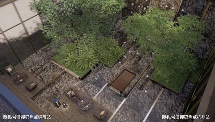 第五重:下沉庭院打造一体式景观,墙面流水至地面,结合水中花池营造出纯粹的自然之境。