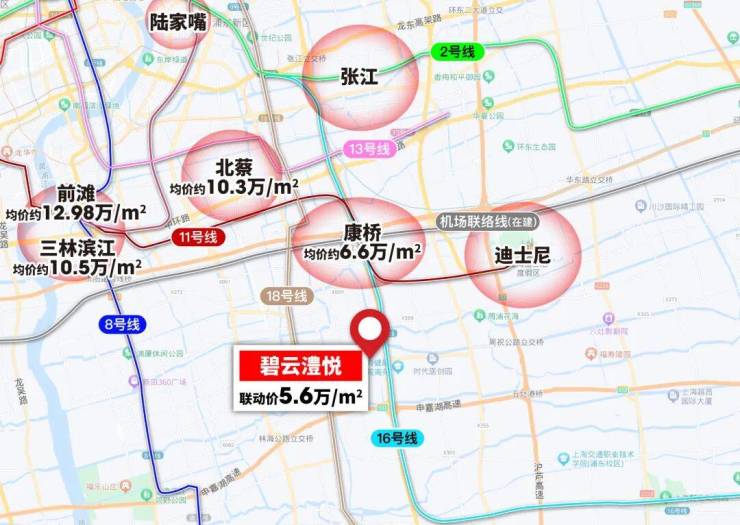 而项目周边有16号线周浦东站以及18号线繁荣路站,可便捷到达上述板块。