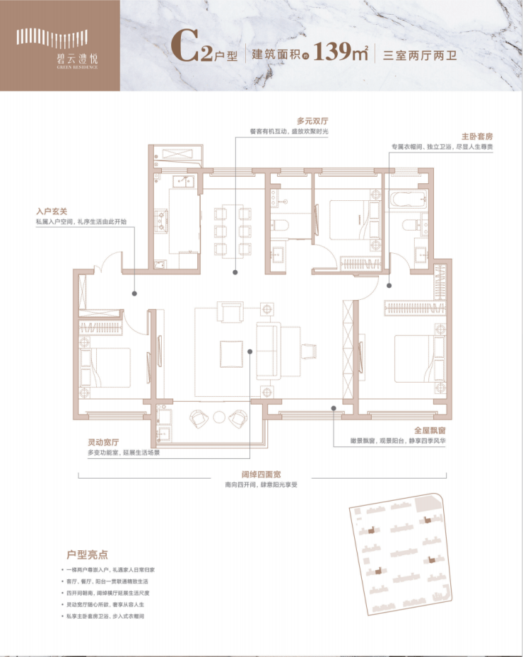 舒展135&139㎡,周浦明星爆款,空间的朗阔感再次提升。南向四开间,尊贵独立玄关,提高入户仪式感,多元双厅,厨房与餐厅连接便捷。大横厅视野开阔,采光与通风效果俱佳,更是改善家庭必备。