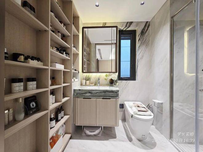 此外架空层还有很多细节,比如整体的挑高整整有5.2m,妥妥的豪宅级别配置;地面拼花都是纯手工拼接,摩登现代,打造出移步异景的归家仪式感。在600万级的项目中,真真实实属于超配!