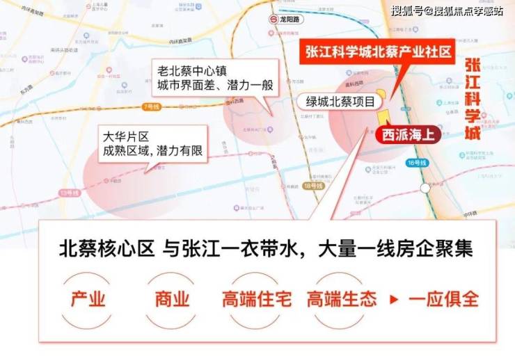 距离张江仅一线之隔,并且拥有大量的产业、住宅、教育以及生态用地,城市界面、潜力值都远远高于北蔡的其他区域。