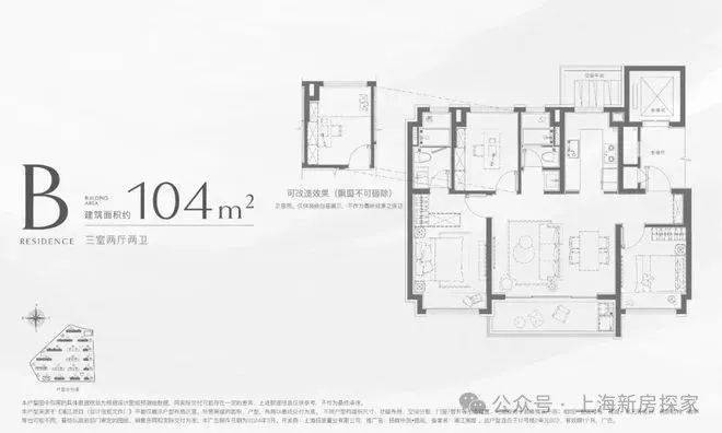 户型B| 建筑面积约104㎡3室2厅2卫