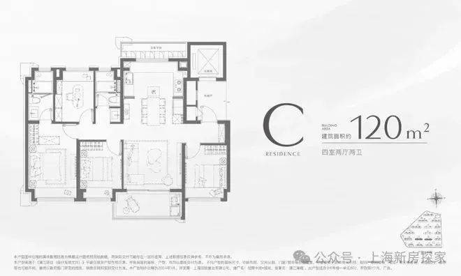 户型C| 建筑面积约120m²四房两厅两卫