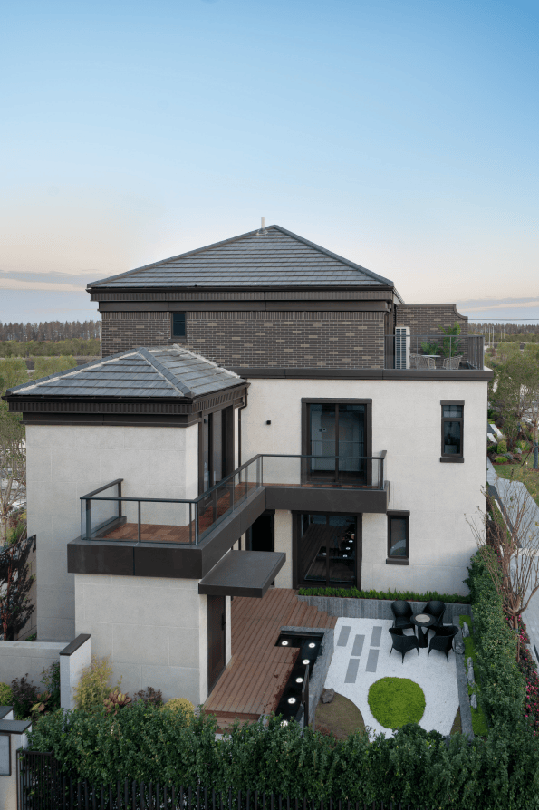 项目建筑采用新中式风格,以黛瓦白墙搭配现代材质,延续江南坊制与上海里弄文化记忆,营造清幽私密的社区环境。合院别墅建面约148-175㎡,地上三层,地下一层,附带40-60㎡私家庭院及50-60㎡、层高5.2米的地下室,L型布局实现多角度采光,围合式设计独立入户,三重院落有天有地有花园。电梯洋房建面约80-90㎡,总高四层,一梯两户,南北通透,全明格局,精装交付,配备全屋地暖、中央空调及智能家居系统,适合小家庭或年轻群体居住。