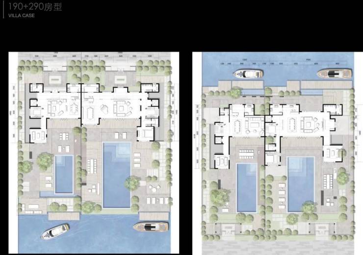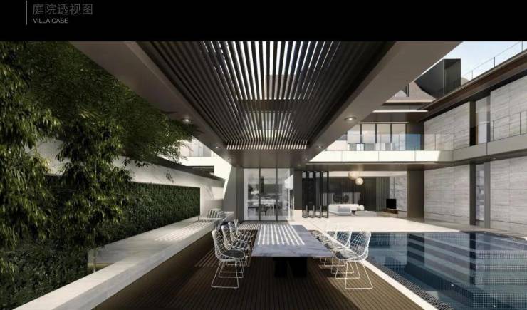 北入户的190+290房型,一层朝南直面庭院和泳池,如果配上整扇的落地玻璃移门......
