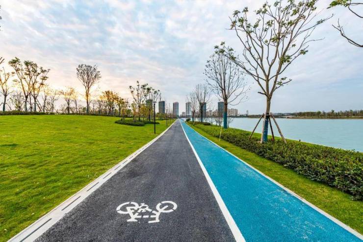 周末的兰香湖,人们携家带口来野餐、露营,亲近大自然,湖边草坪上架起一顶顶帐篷。运动爱好者,可以在近4公里的湖岸边自由骑行或相约夜跑。简直是遛娃遛狗的圣地,孩子们疯玩一天不厌倦,如同度假一般享受。