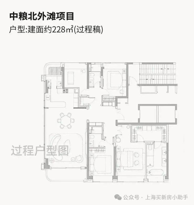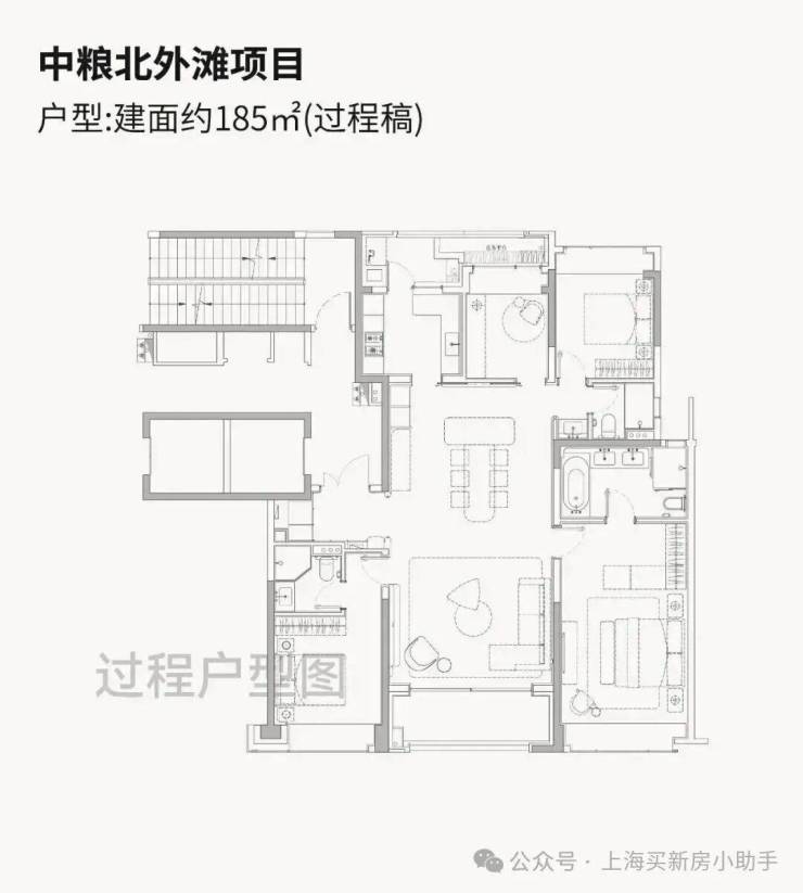 中粮北外滩壹号售楼处电话/地址☎️:400-1010-064✅✅即将入市的高层户型建面约185-228㎡纯粹4房,尺度感相当奢阔!高层户型均为两梯两户独立电梯厅配置,隐私性与尊崇感拉满!