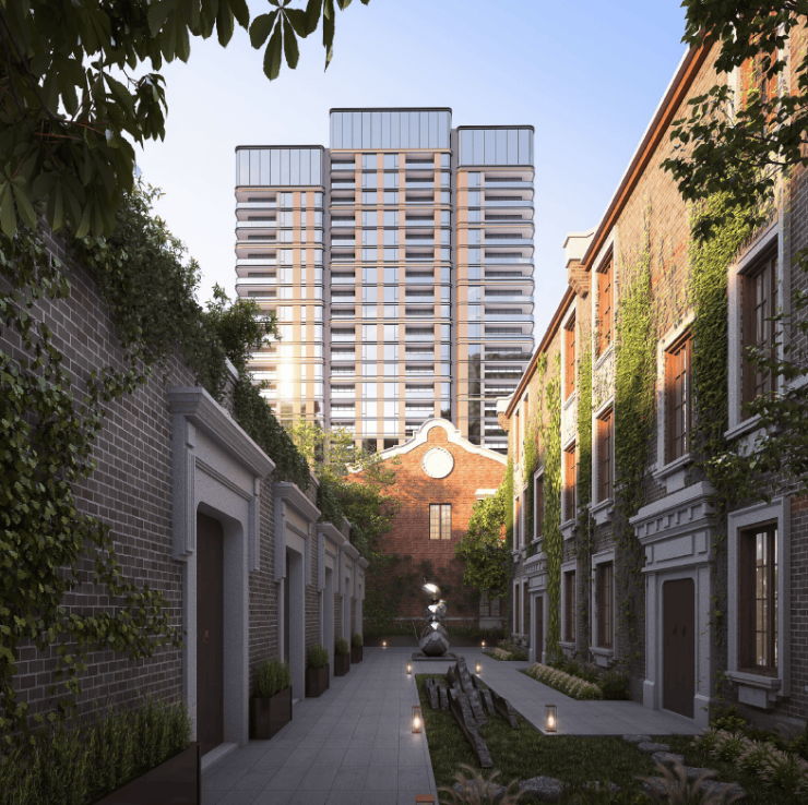 该项目计容建面4.65万㎡,容积率1.95,是上海市中心罕见的无商办、无15%自持住宅、无5%保障房的纯住宅,高层90套,别墅118套