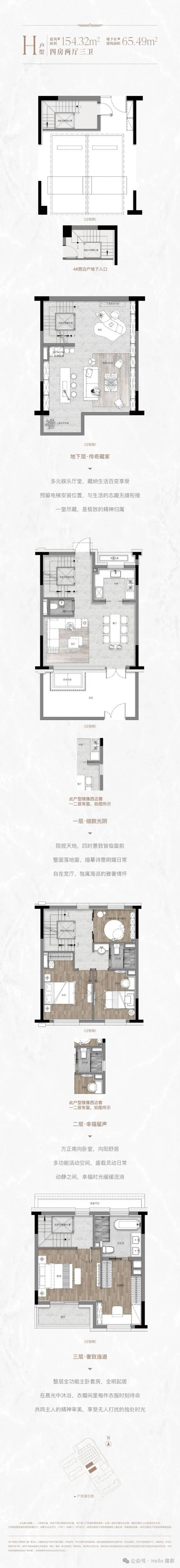華玥·H户型·建筑面积约154.32㎡,地下室建筑面积约65.49㎡