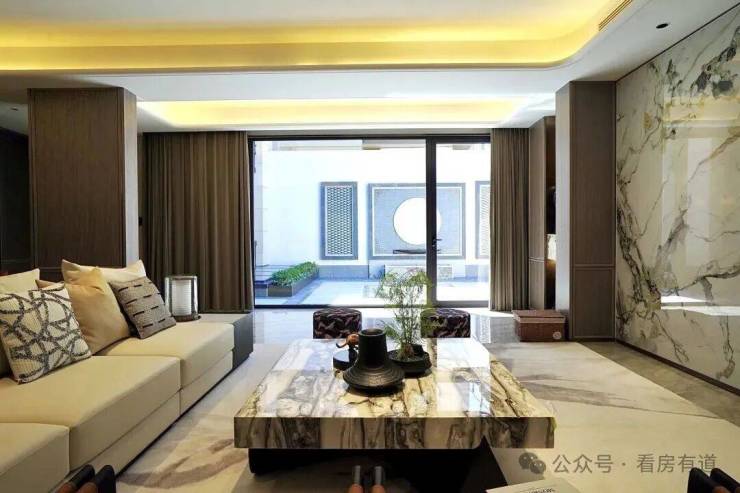 项目采用院厅融合设计,将下沉式院落焕新为地上庭院,扩大院子面积,为客厅的延伸与衔接留下更多想象空间。