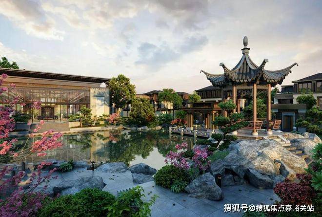 约3500㎡的中央景观区,融汇山池、六角亭、戏台、石舫,实现一步异景的院落诗意居境。