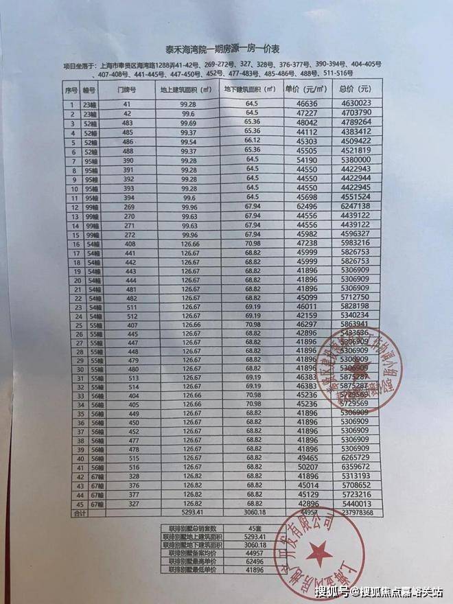 最新一房一价表: