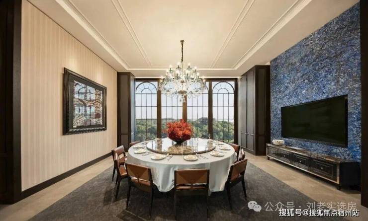 比如项目的门楼采用了上海海鸥丽晶酒店同款巴西金石材。接待大厅采用进口奢石巴西乌金石打造的大理石柱。接待台则采用玻利维亚蓝,这是世界上储存量极少的石材之一,被称为奢石中的劳斯莱斯。随处可见Old money的奢华风格。