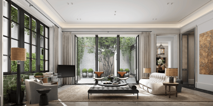 弘安里的院子,投影面积约65㎡的露天大庭院与约20㎡的小南院,高度分别为4.5米和3.7米的院墙围合,向天空敞开怀抱,将私密揽进胸怀,特别着重打造的双墙工艺,再加一重家人生活隐私的保护。