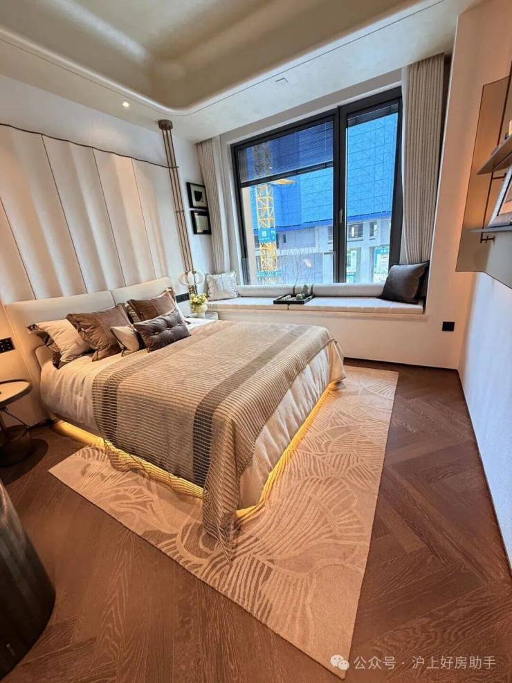 项目部分户型的主卧不仅有约270度无柱飘窗,甚至还有户型做到了上海首个最大连续约12米无柱化设计的全景舱户型!