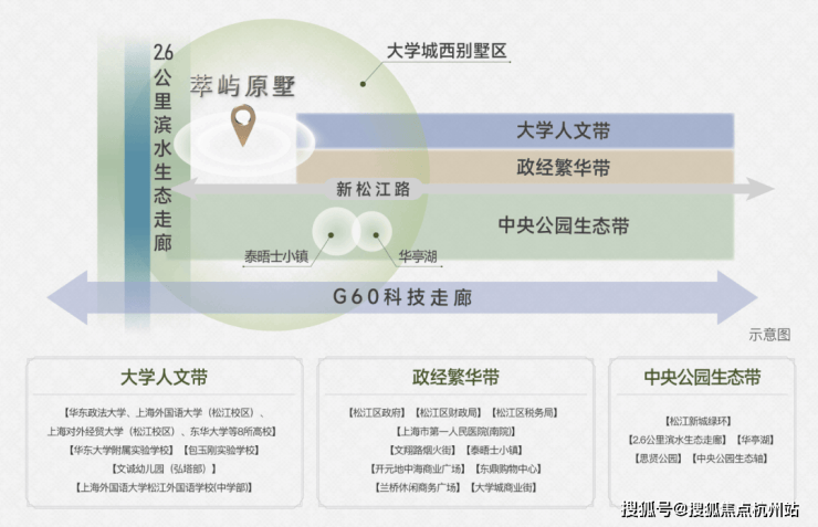 三公里辐射圈内,8所高校(含两所211)华东大学附属实验学校、包玉刚实验学校、文诚幼儿园(弘塔部)等名校环伺,坐拥政务要枢、松江首家三甲医院、繁华商圈皆精粹于此,尽纳墅居版图