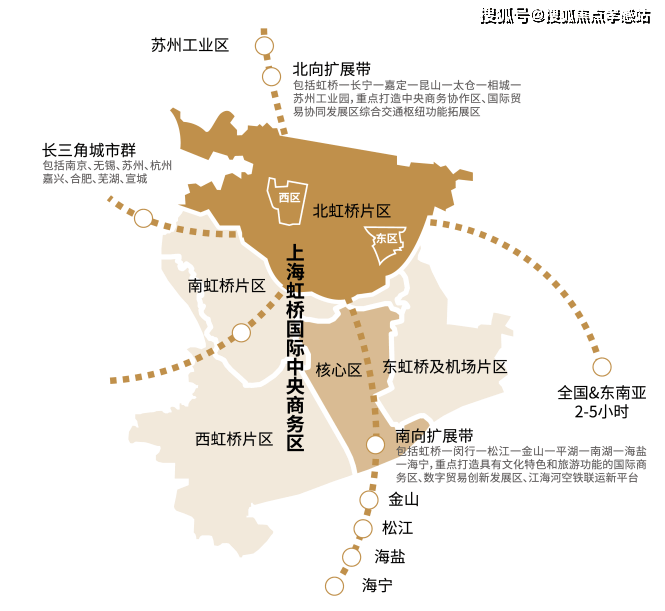 上虹桥依托东西两个片区(西居东产,共计约167公顷),遵循“以人为本、产城融合、多元包容、活力共享”的理念,整体打造创新经济集聚区、中央商务配套区和高品质国际化社区。