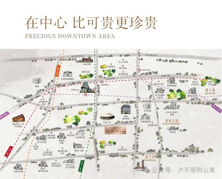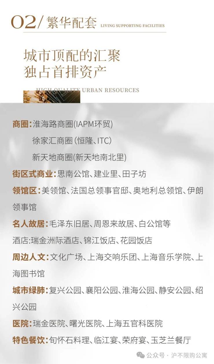 项目周边交通极为便利,地铁1/10/12号线陕西南路站距离仅800米,13号线淮海中路站1.1公里,自驾可通过内环、延安、南北高架快速出行。商业配套方面,思南公馆、建业里、田子坊等街区式商业近在咫尺。医疗资源丰富,瑞金医院、曙光医院等优质医疗机构环绕。此外,项目还毗邻文化广场、上海交响乐团等人文配套,为住户提供高品质的生活体验。