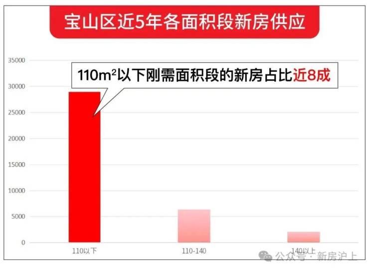 开头就说过了,宝山近5年的新房供应,建面约110㎡以下的小户型占比约8成。