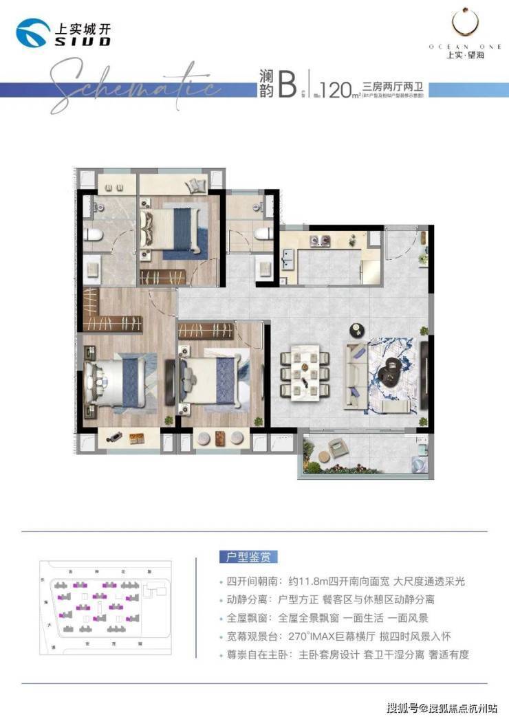 产品介绍:推出建面约约100-122㎡三房,均价3.3万/㎡
