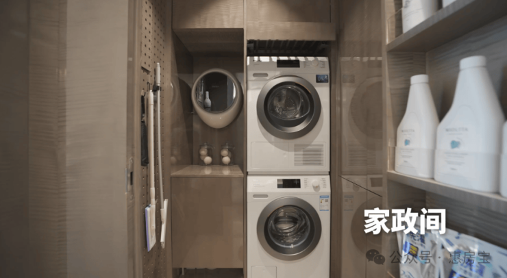 配备超2㎡独立家政间,通常只有180㎡以上大户型才会配置,可轻松放置洗烘一体机,也能灵活改造为储藏间、杂物柜或零食柜,让居住空间更整洁有序。