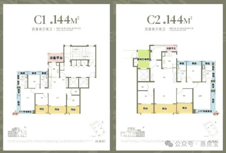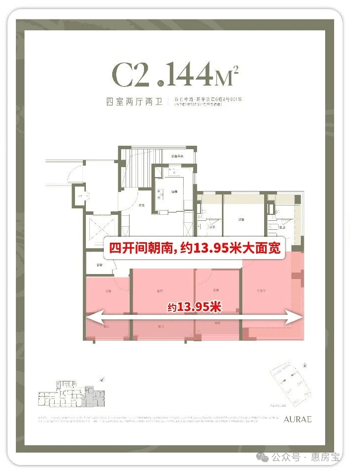 2、约144㎡4房,市区景观更好、实得率更高的改善户型
