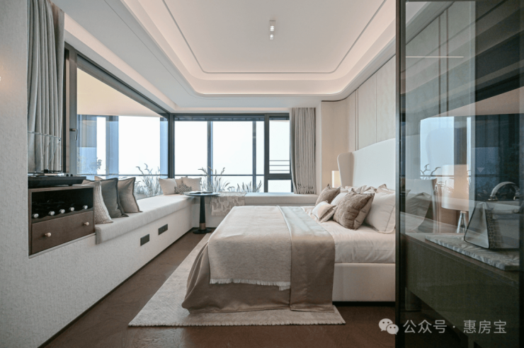 同时配备更多飘窗,尤其是主卧C字型全景飘窗,整体飘窗赠送面积约11.5㎡,比常规户型多出约2㎡。