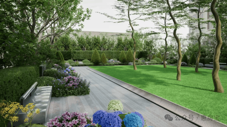 项目的超宽楼间距优势十分突出,大部分楼栋间距达约50米,最大处更宽至约57米,不仅带来更充足的采光与更开阔的视野;更搭配超200米的中央绿轴,让更多绿意融入日常。