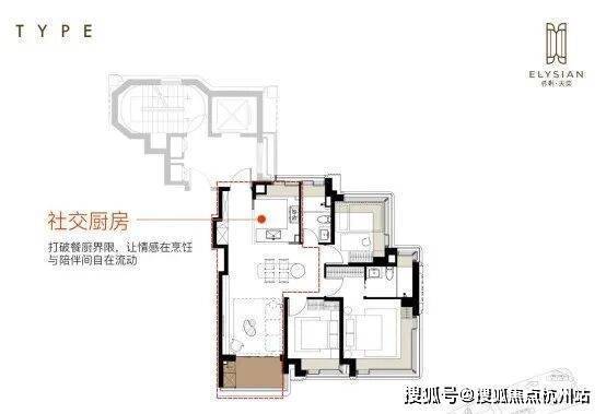 2.social厨房设计,开放式厨房水槽区转向餐厅一侧,杜绝消极空间让室内轻松连贯,也让情感交流、家庭互动在无界限。