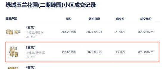 6.二手市场价格可期,旁边绿城二期今年成交一套90m²小户型,单价9.1万,比保利天奕前期小户型最贵单价还贵出近1万/m²!