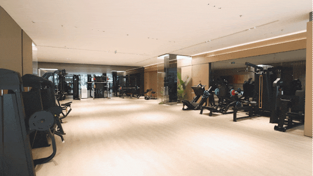 在下沉式景观庭院两侧,是不同的邻里空间。一侧是邻里中心,涵盖恒温泳池以及宽阔的健身房空间。当业主锻炼时,不被空间局限。透过落地窗,可以一边挥洒汗水,一边尽情欣赏庭院中的美景。