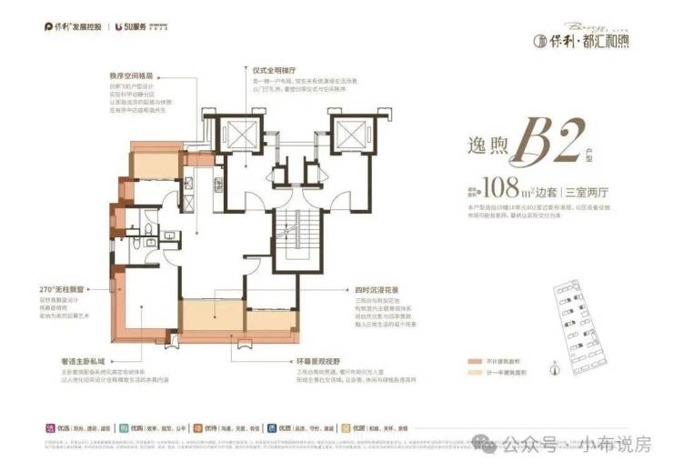 恒温泳池会所+高压氧舱+篮球/匹克球双场景场馆;全明梯厅+类一梯一户+三阳台+约270°转角飘窗……