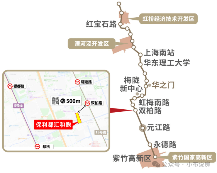 项目距离15号线双柏路站直线距离约500米,纯正的地铁盘。
