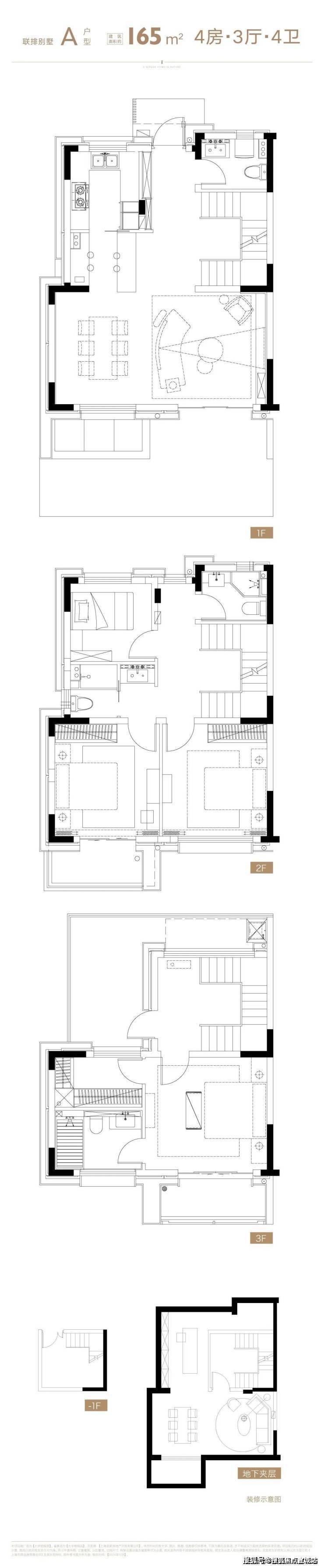 户型设计则精准击中高端改善家庭的需求。作为中环旁近 5 年仅有的 2 个容积率 0.75 的纯墅区之一,项目仅规划 27 栋联排别墅与 4 栋叠拼别墅,共 141 户实景现房,人口密度低至 15 人 / 万㎡,日间噪音实测仅 40 分贝,堪比图书馆的静谧环境。139㎡下叠户型堪称 “三口之家优选”,地上四房两厅三卫布局,6.8 米南向面宽保证充足采光,赠送约 30㎡庭院与 50㎡双层地下室,得房率高达 157%—— 庭院可种花草,地下室经新风除湿系统改造后,化身酒窖或影音室毫无压力。165㎡联排则适配多子女家庭,地上三层 + 地下二层结构,附带 40㎡庭院与 20㎡星空露台,三层独立空间实现动静分离,长辈房在首层、儿童房在二层、主卧独占顶层,兼顾孝亲需求与隐私保护。