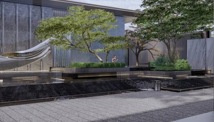 第五重:下沉庭院打造一体式景观,墙面流水至地面,结合水中花池营造出纯粹的自然之境。