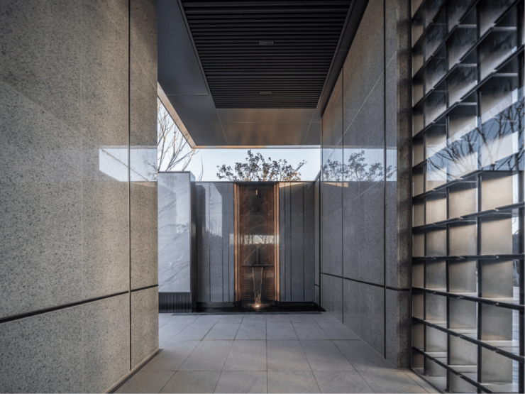 第四重:后场廊园两侧采用金属格栅与景墙融合打造,于细微处见真章、低调处见奢华;