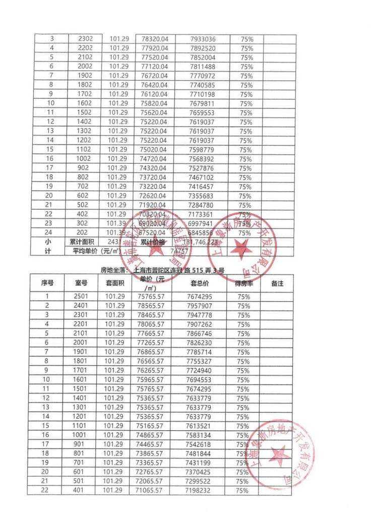 一房一价表