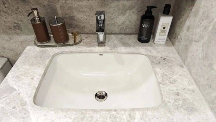所有户型全屋墙纸交付,连电视机背景墙岩板以及主卧背景墙都是交付标准,卫生间甄选不同的石材,以此来满足功能区的需求。