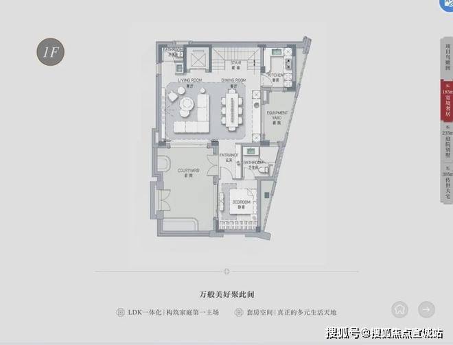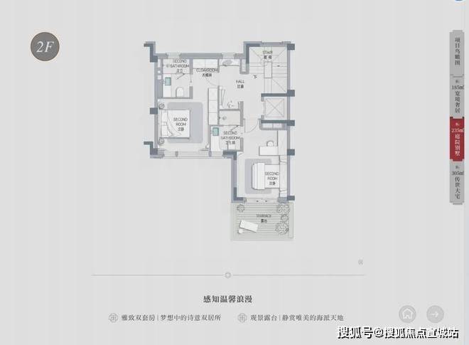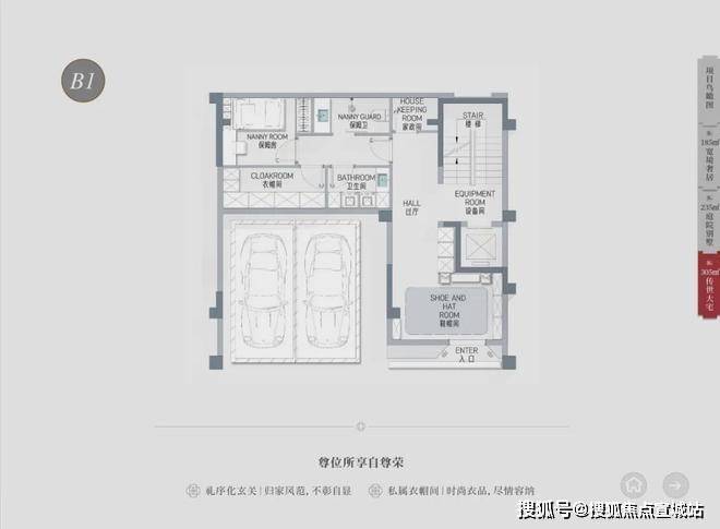 户型面积:主推建面约 185-305㎡的别墅。