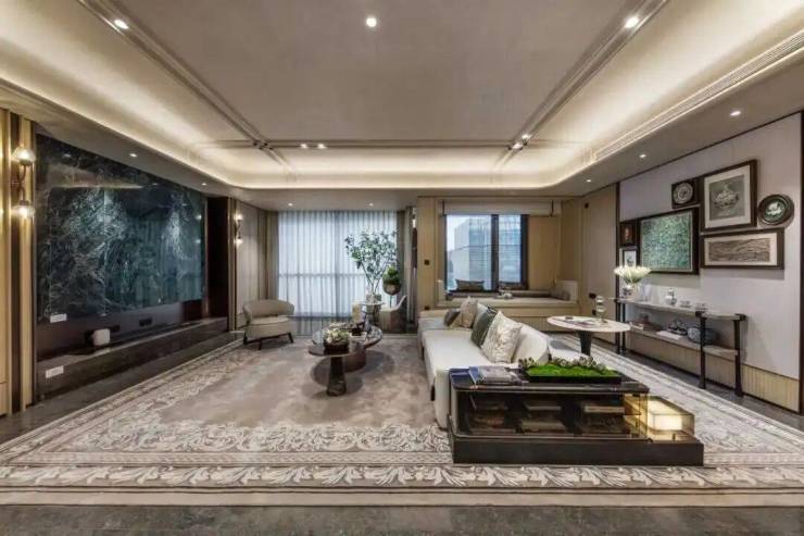 而步入样板间之后,一种当代、静谧且极具质感的艺术氛围扑面而来。