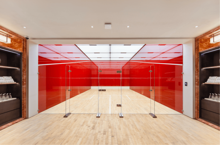 壁球馆用鲜亮的米兰红石材作为背景,营造非常时尚的运动风。